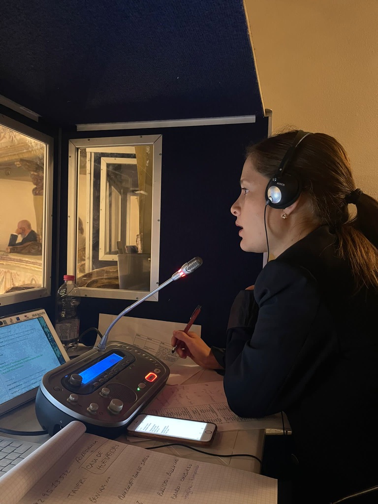 Como intérprete, he tenido el privilegio de trabajar con líderes mundiales y altos dignatarios. He interpretado en simultánea a figuras como Ursula von der Leyen, Presidenta de la Comisión Europea, y a exministros italianos como Dario Franceschini. Mi trabajo se extiende más allá de las fronteras físicas con la interpretación simultánea en remoto de personajes como Justin Trudeau, ex primer ministro de Canadá, así como a directores generales de organismos vitales como Tedros Adhanom Ghebreyesus, de la OMS y el Secretario General de las Naciones Unidas, António Guterres